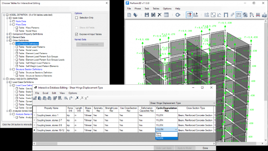 o Các bảng dữ liệu trong Perform3D đã được mở rộng với tính năng Chỉnh sửa Cơ sở dữ liệu Tương tác (Interactive Database Editing) cho phép thêm, sửa đổi hoặc xóa: