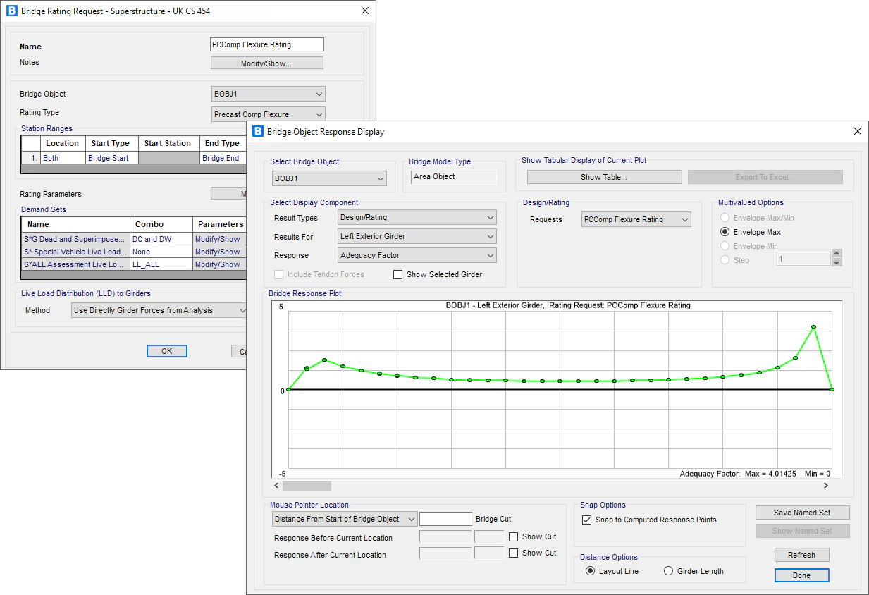 - Tính năng đánh giá và xếp hạng năng lực cầu (Bridge rating) theo tiêu chuẩn Anh Quốc CS 454 hiện đã được tích hợp sẵn.
