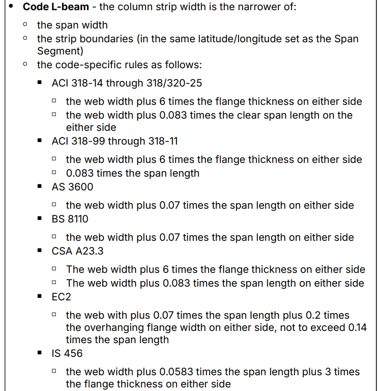 - Khi chọn mục này, dải cột sẽ được tạo ra dựa trên giới hạn chiều rộng cánh hữu hiệu của dầm chữ L (dầm có cánh một bên) theo quy định của tiêu chuẩn.